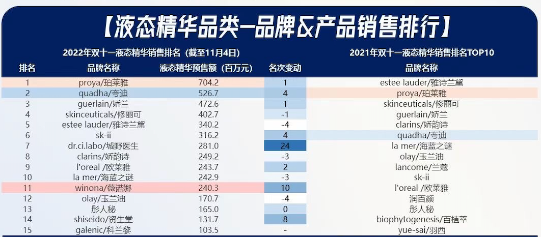 天貓雙11首輪銷售液態(tài)精華排行榜,摘自信達新消費,數(shù)據(jù)來源:魔鏡數(shù)據(jù)