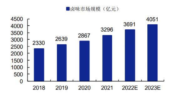 品牌消費(fèi)專家萬濤告訴我們,雖然國內(nèi)鹵味市場規(guī)模處在擴(kuò)容階段,其市場規(guī)模預(yù)估在2023年達(dá)到4051億元。
