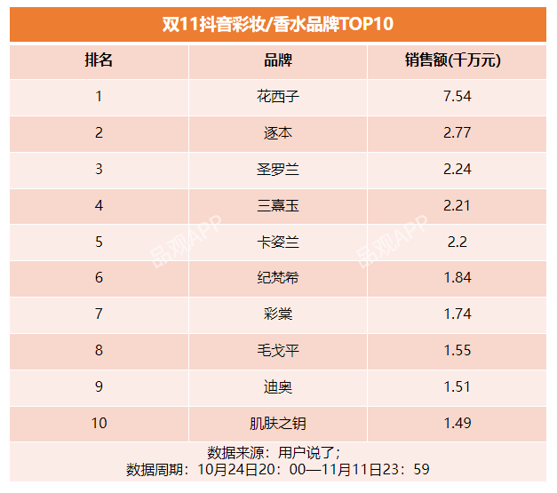 其中逐本、彩棠、毛戈平均為首次上榜。據(jù)彩棠戰(zhàn)報,今年雙11期間,彩棠在抖音平臺的GMV較去年同比增長超過380%,其品牌自播間也登上抖音彩妝品牌自播賬號榜NO.3。