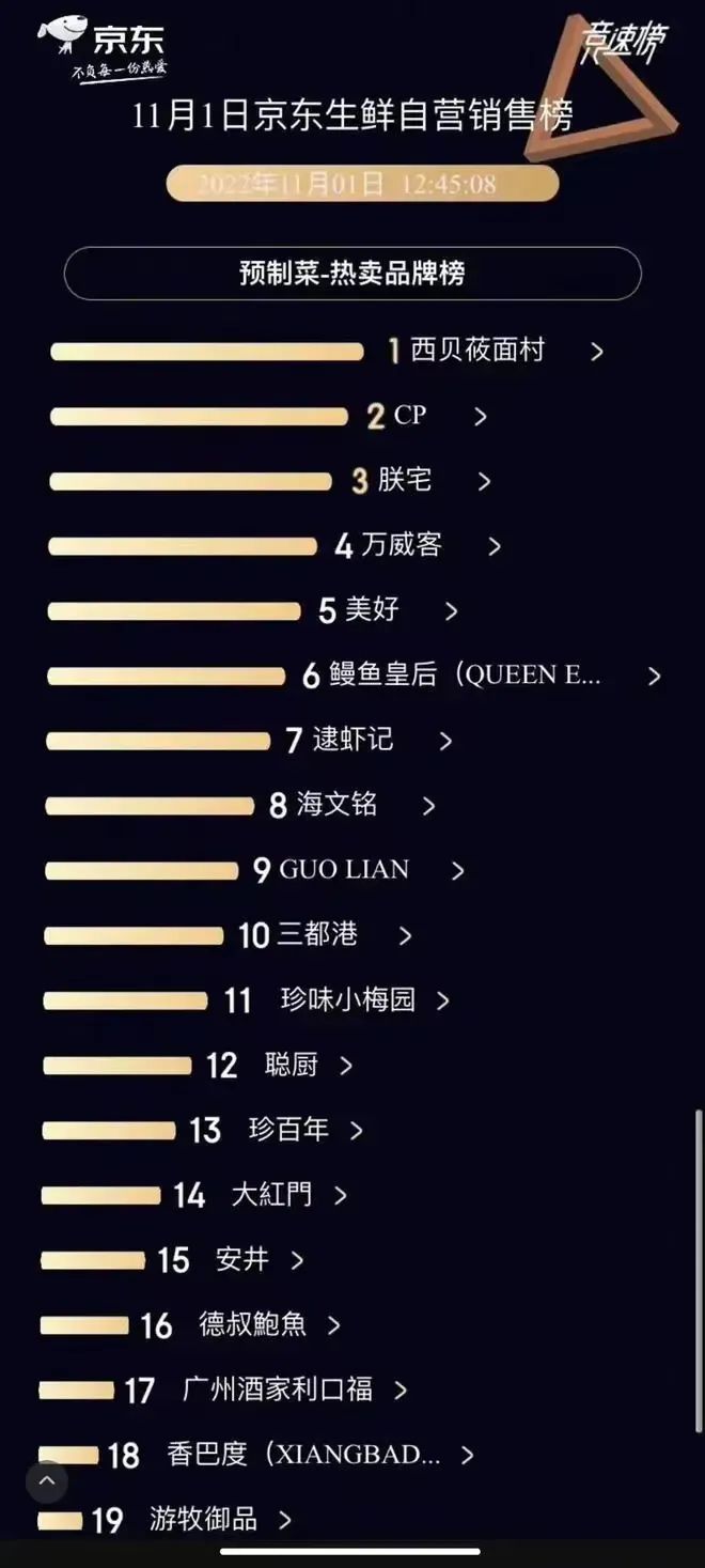 在京東公布的預制菜榜單中,正大廚品、萬威客、聰廚、漢拿山、游牧御品、珍味小梅園等預制菜品牌紛紛上榜。
