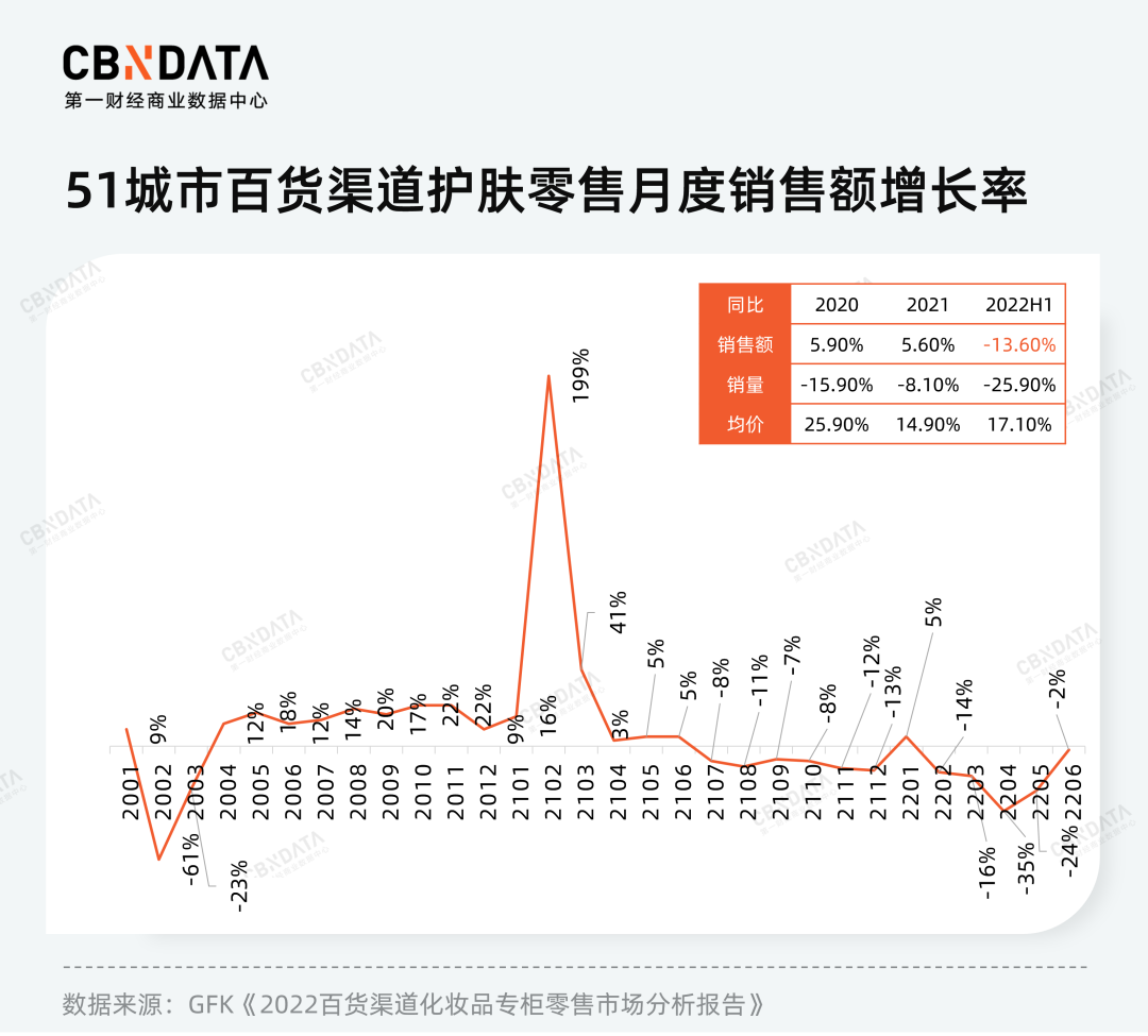 最后,SENSAI需要重新考慮其線下渠道的布局。2018年,花王對SENSAI的線下策略是布局全國高檔百貨商城。2021年花王調(diào)整策略,決議以海南免稅店為契機,將SENSAI上架至全國各大機場的免稅店。但目前來看,跨國旅行短時期難以恢復,免稅店迎來消費者的日子似乎遙遙無期。若回歸百貨,SENSAI更需要面臨疫情反復之下不確定的市場環(huán)境。GFK一份針對百貨渠道化妝品零售市場的報告顯示,由于多地疫情爆發(fā),2022年上半年51個重點城市百貨渠道護膚零售市場銷售額下滑了13.6%。