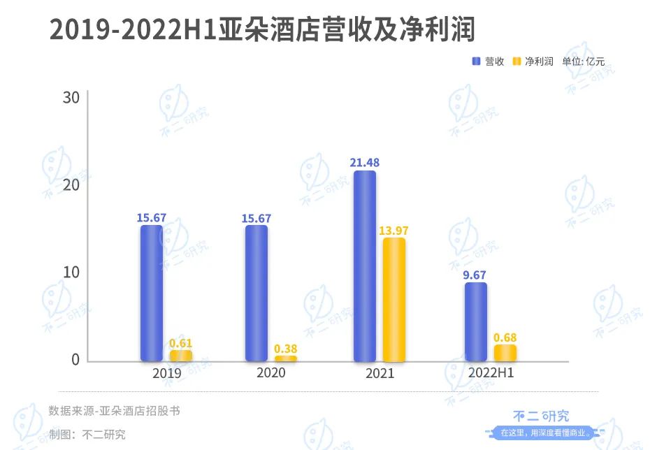 招股書(shū)顯示,亞朵酒店2019年、2020年的營(yíng)收分別為15.67億元、15.67億元,基本持平;2021年,其營(yíng)收21.48億元,同比增長(zhǎng)37.09%。2022上半年,其營(yíng)收為9.67億元。