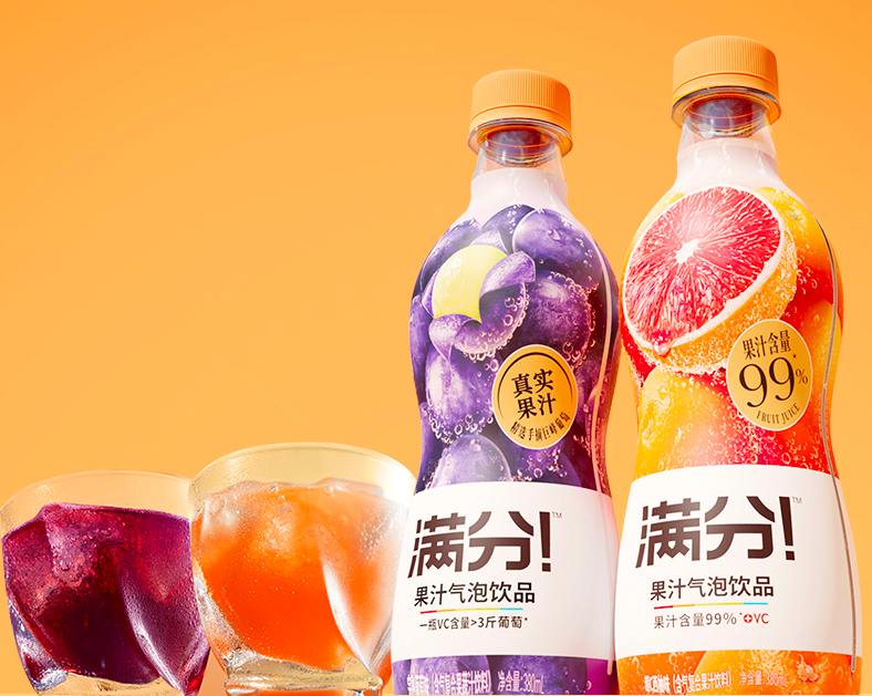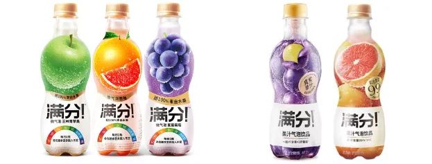 滿分在今年6月測(cè)試時(shí),喊出了“果汁氣泡,每一口都有真實(shí)果汁”的口號(hào)。品牌似乎想要改變消費(fèi)者對(duì)果汁氣泡飲料“并非是使用真實(shí)果汁而是添加劑”的固有認(rèn)知。