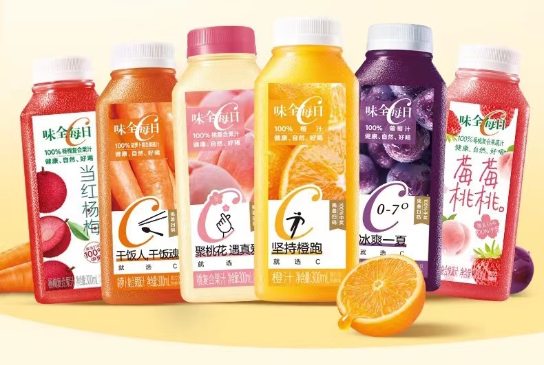 而在FC(濃縮還原果汁)100%純果汁類型上,有著味全每日C,主打低溫100%純果汁/果蔬混合汁。這個(gè)自2001年就在上海成立的100%冷藏果汁品牌,在華東地區(qū)市占率曾超過(guò)40%。