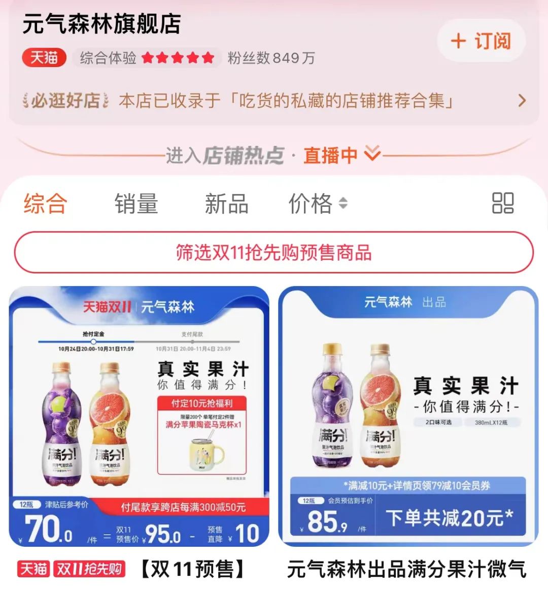 在今年6月份時(shí),我們發(fā)現(xiàn),滿分悄悄將新品放在“元?dú)鉂M滿旗艦店”進(jìn)行體系測(cè)試。等到了10月,我們又關(guān)注到元?dú)馍止俜狡炫灥暌呀?jīng)在銷售滿分新品。那么滿分算成功“復(fù)活”了嗎?