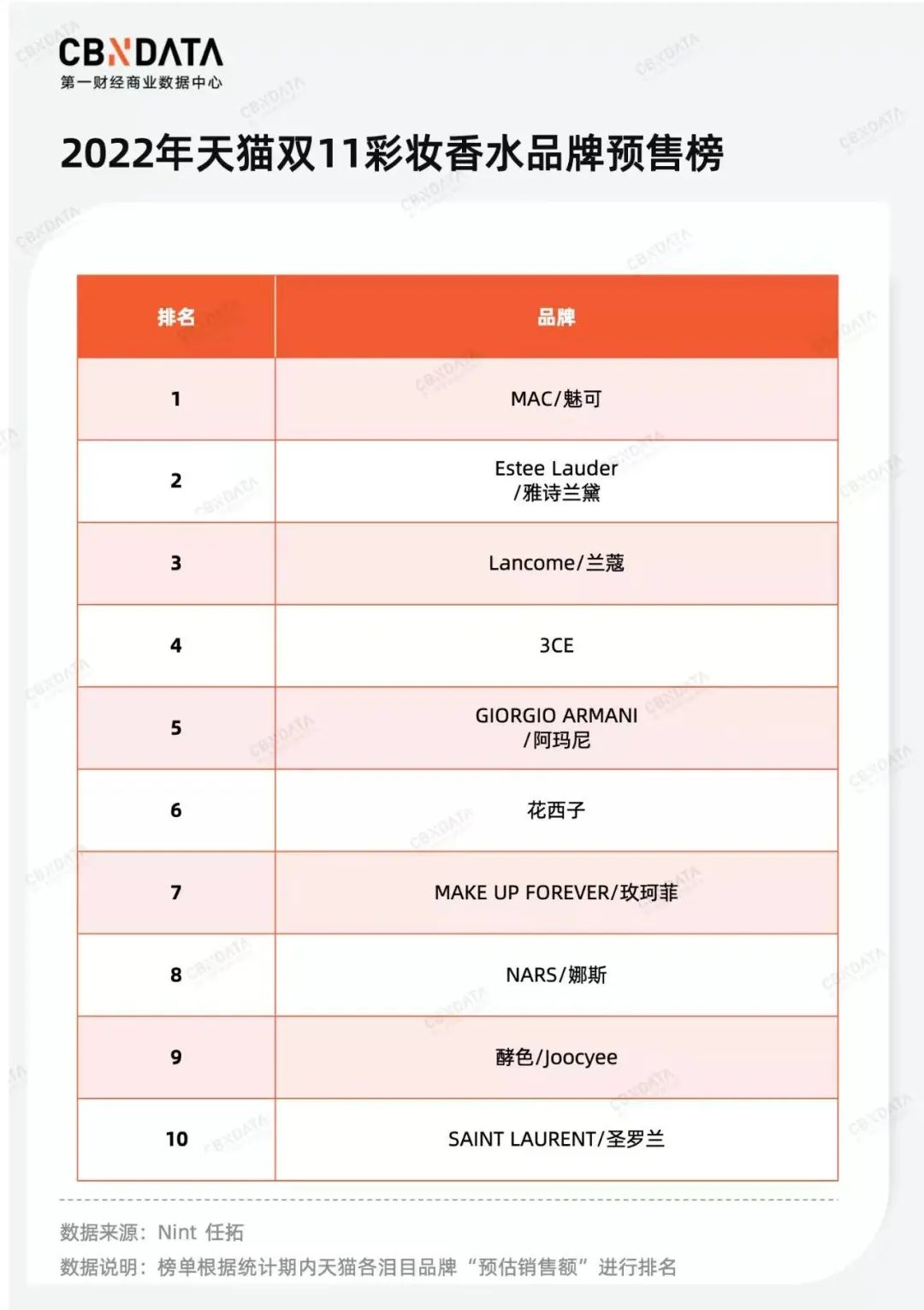 完美日記首次跌出雙11彩妝類預(yù)售TOP10。來源:CBNdate