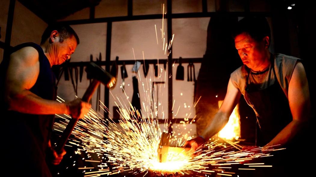 在鄧家刀的廠房內(nèi),火光四濺,錘打之聲此起彼伏。