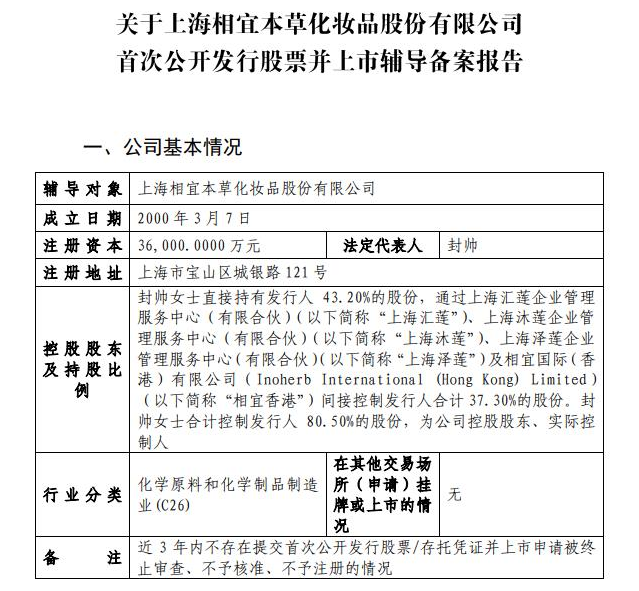 11月15日,中國證券監(jiān)督管理委員會官網(wǎng)披露,上海相宜本草化妝品股份有限公司(以下簡稱“相宜本草”)已于11月20日同中金公司簽署上市輔導(dǎo)協(xié)議,擬于A股掛牌上市。這也意味著時(shí)隔10年后,相宜本草再次向A股發(fā)起沖擊。