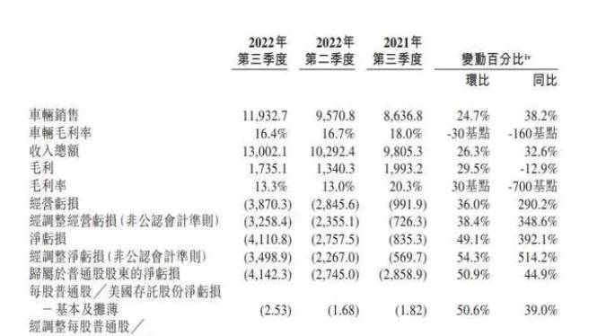 這也導(dǎo)致了蔚來當(dāng)下正處于營收和虧損雙增長的撕裂態(tài)勢。今年三季度,蔚來營收130億元,同比增長32.6%,其中交付新車31,607臺,同比增長29.3%。