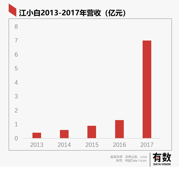 在2013年-2017年間,江小白營收飛速增長,單從增速來看,連茅臺也拍馬難及。