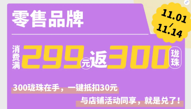 龍湖天街借助了雙11開展了瓏珠秒殺活動,試圖增強會員和粉絲的黏性,比如餐飲類10瓏珠秒殺410瓏珠券、指定零售類11瓏珠秒殺1111瓏珠券、指定珠寶及數(shù)碼品牌類滿5000贈2000瓏珠券。按照10瓏珠抵1元的規(guī)則,其活動力度不小。