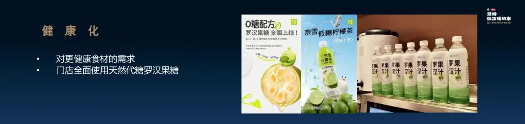 所以,今年我們首次研發(fā)了一款羅漢果汁作為代糖,希望同行們可以到店里去喝一喝,給我一些反饋,未來(lái)這類產(chǎn)品的迭代升級(jí)是非常重要的。