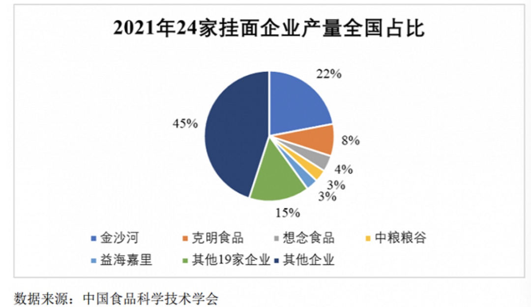 在掛面領(lǐng)域中,根據(jù)招股書引援的數(shù)據(jù),在國內(nèi)24家掛面企業(yè)中,金沙河排名第一位,市占率達到22%,想念食品排名第三,僅占比4%。換言之金沙河市場占有率是想念食品的5倍。