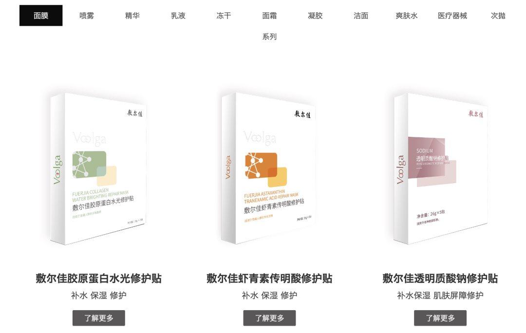 敷爾佳產(chǎn)品矩陣 圖源:官網(wǎng)
