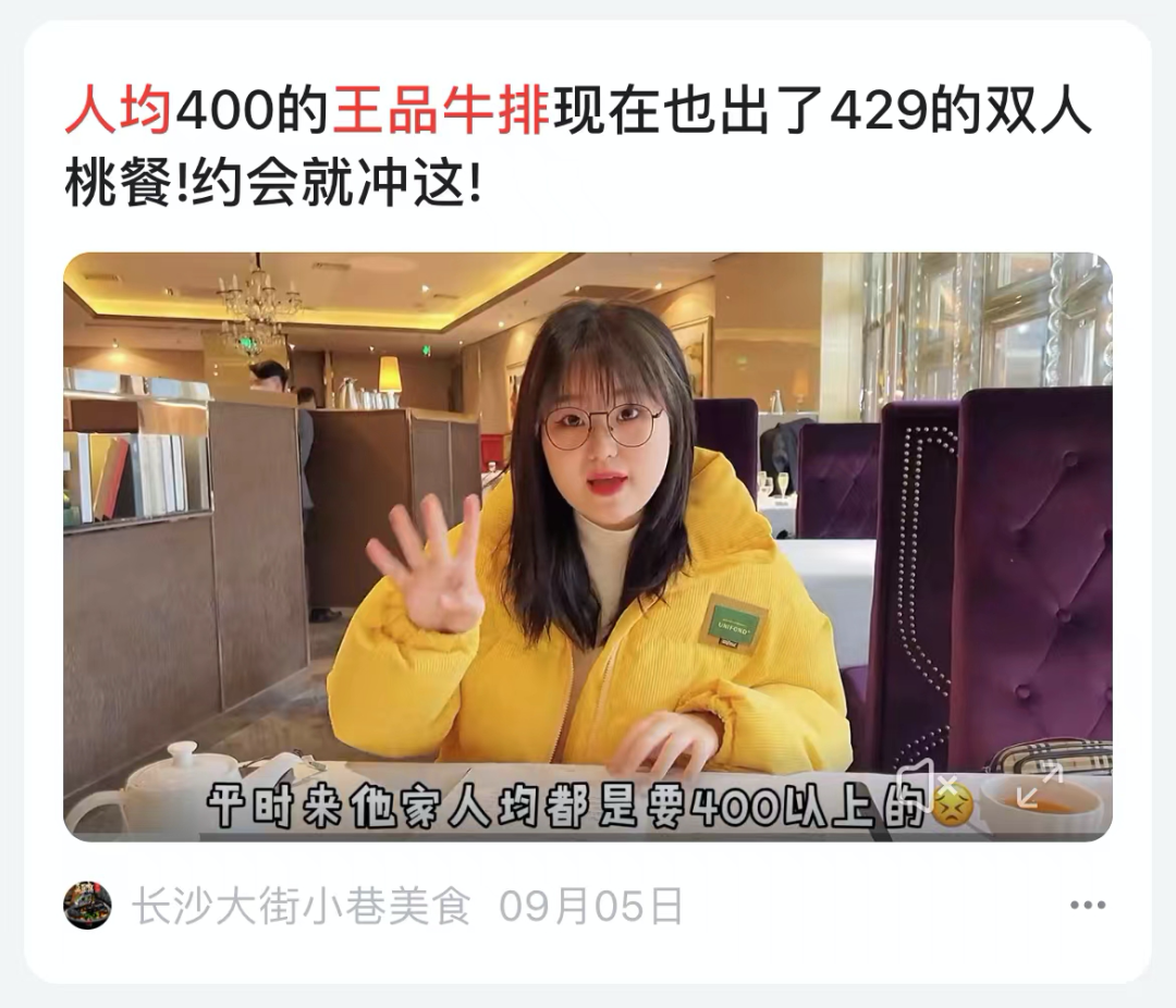 人均400元以上的高端王品牛排,如今2人套餐只要429元;