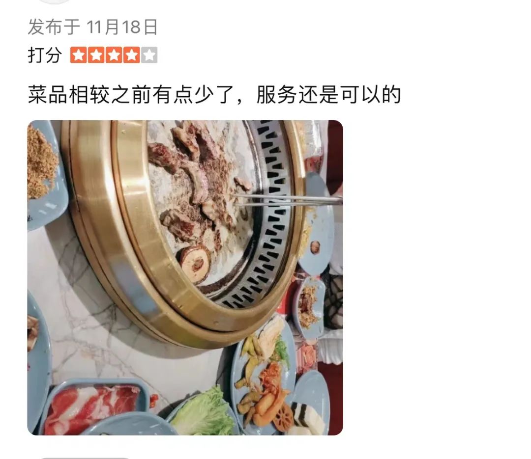 5、烤肉自助菜品減少,從86/位降低到78元/位
