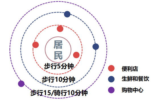 社區(qū)商業(yè)5-10-15的輻射模型 | 來源:利林商業(yè)