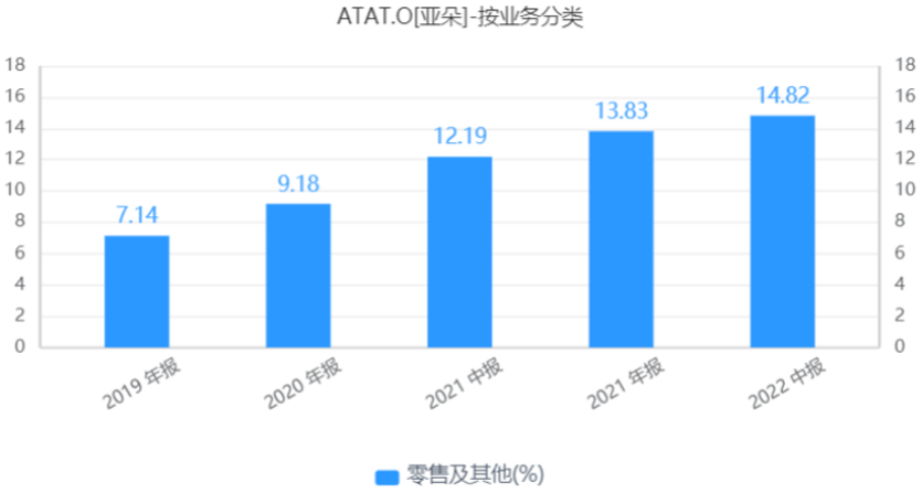 數(shù)據(jù)顯示,2019-2022年上半年,亞朵零售收入及其他分別為1.12億、1.44億、2.97億和1.43億元,所在總營收中的占比分別為7.2%、9.2%、13.8%和14.8%。