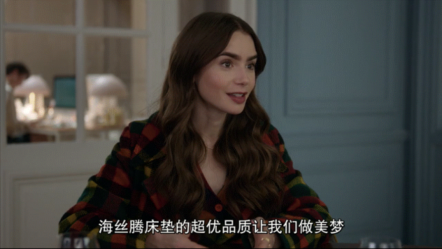 劇中,Emily還和閨蜜Camille一起躺在海絲騰床墊上自拍,不停地夸獎(jiǎng)其舒適度。