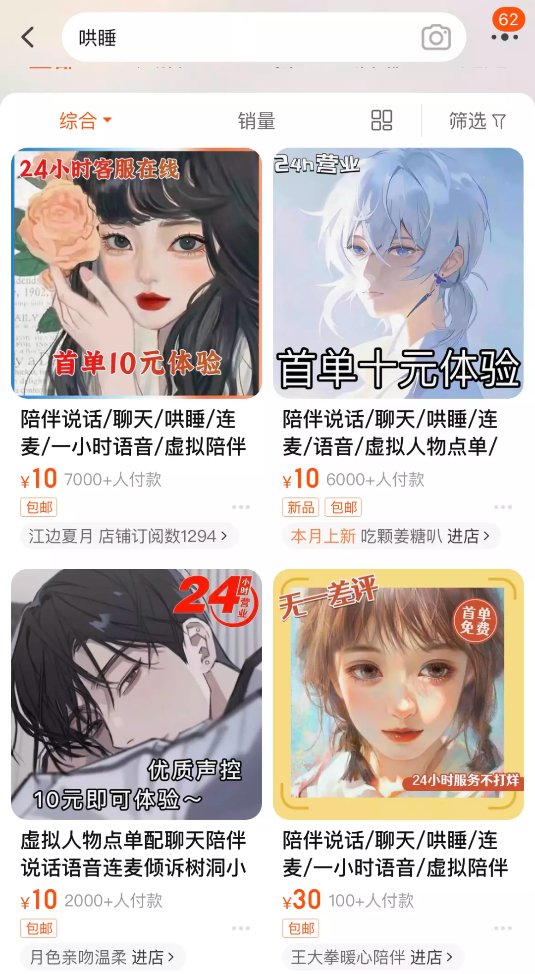 如果不是社恐,甚至還可以下單24小時(shí)營(yíng)業(yè)的“哄睡師”。用賽博好友,鋪墊真實(shí)困意。價(jià)格通常按情商和哄睡熟練度在幾十到百余元徘徊。