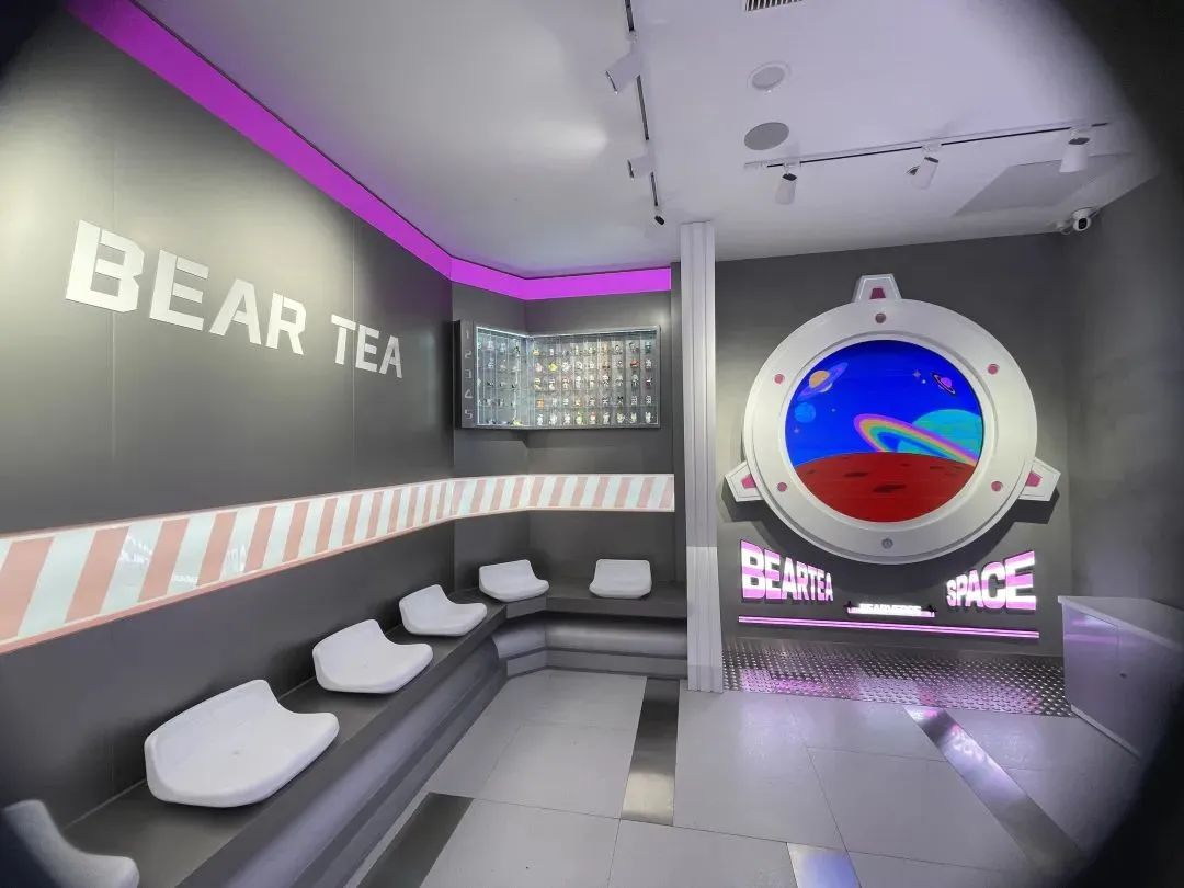 「熊姬」聚焦鮮奶茶品類,將茶飲與元宇宙結合,面向喜愛泛二次元人群和年輕時尚群體,推出健康好喝的鮮奶茶飲,主打產(chǎn)品有芋見幸福、滿杯鮮橙、黑糖厚鮮奶、手作茶、椰香芒芒等飲品。在門店設計方面,「熊姬」也進一步融合元宇宙元素,比如,為顧客點單的并非店員,而是一塊能與人互動的電子屏,戴上VR眼鏡,顧客更能在店內實現(xiàn)“自制茶飲”的真實體驗。