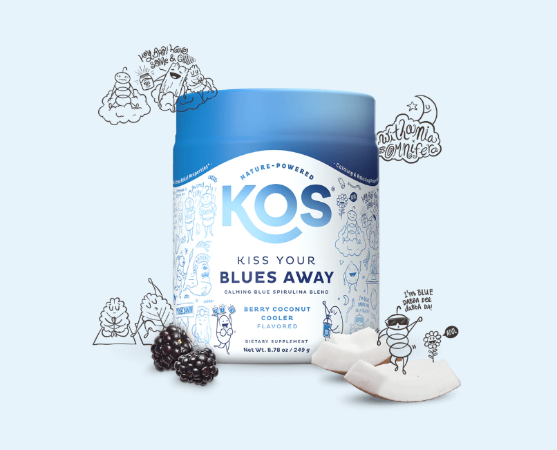 現(xiàn)如今,都市人群普遍存在精神“高壓”狀態(tài),于是海外品牌KOS推出了一款名為“Kiss Your Blues Away” 的功能性補劑,專為壓力普遍較高的都市人群而研發(fā),產(chǎn)品以藻藍蛋白配合南非醉茄與靈芝,在幫助降低皮質(zhì)醇水平、減輕壓力的同時還能促進心理健康。獨特的藍色色彩來自于藻藍蛋白,作為螺旋藻的提取物,除了獨特的藍色,還有增強人體的免疫功能,具有刺激紅細胞生成,提高淋巴細胞的活性、清除人體內(nèi)自由基等作用。