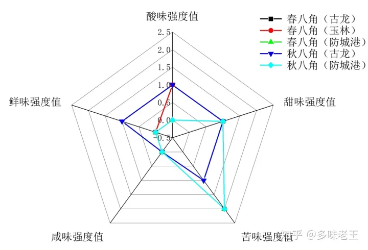 八角電子舌雷達(dá)圖 圖片來源:知乎@多味老王