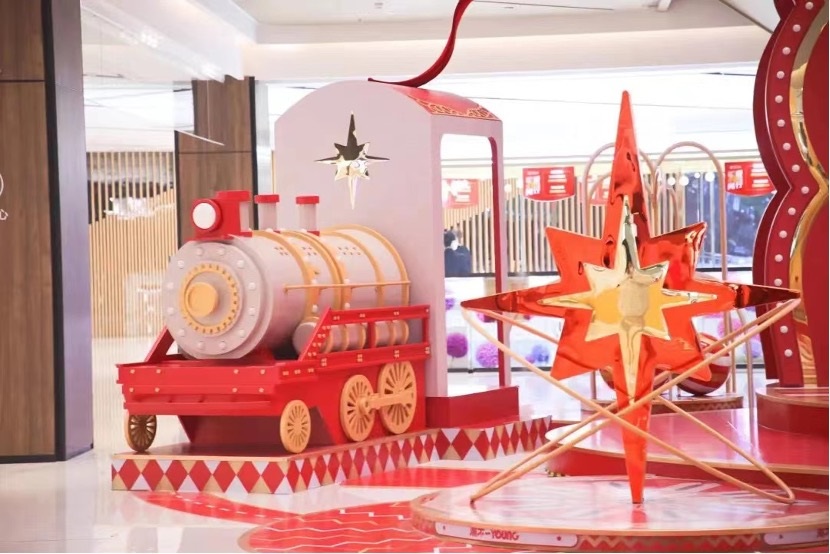 湖州愛山銀泰城通過打造冬季美陳,營(yíng)造網(wǎng)紅打卡氛圍,從而引流線下經(jīng)濟(jì)。本次冬季美陳的主角是一只心形紅色小尾巴兔子,是潮不一young”的星愿收集者——bunny,她用火車帶來絢麗彩星,用星星逐一點(diǎn)亮湖州愛山銀泰城,幫助大家在寒冷的冬日實(shí)現(xiàn)愿望,傳遞好運(yùn)!這次亮燈也是2022年湖州地區(qū)商業(yè)首次亮燈,F(xiàn)場(chǎng)兼具設(shè)計(jì)感與藝術(shù)性的游樂場(chǎng)裝置里,許愿燈、伯利恒之星、旋轉(zhuǎn)木馬、小火車等造景璀璨炫亮,完美呈現(xiàn)夢(mèng)幻場(chǎng)景。