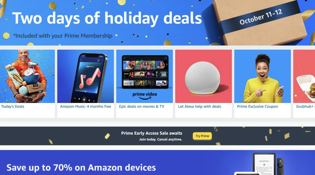 值得關(guān)注的是,面臨史無前例裁員危機的亞馬遜,在黑五到來之前的10月11日至12日,首次舉辦了與Prime會員日同等級的亞馬遜Prime會員早享日(Prime Early Access Sale),時長48小時。