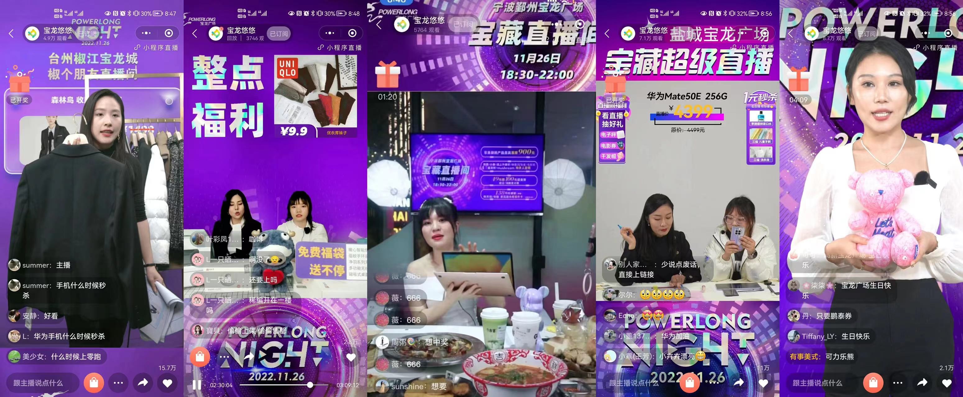 在深度上,寶龍商業(yè)以線上線下聯(lián)動(dòng),應(yīng)對(duì)消費(fèi)模式的轉(zhuǎn)變,兼顧線上引流和線下體驗(yàn)。11月26日,全國各聯(lián)動(dòng)項(xiàng)目通過寶龍商業(yè)自有平臺(tái)“寶龍悠悠”打造了“寶龍印記直播間”,觀看人次突破百萬。其中十大項(xiàng)目主力直播間攜手品牌商戶,以汽車、黃金珠寶、電子數(shù)碼三大品牌矩陣,通過14小時(shí)不間斷直播,創(chuàng)造了線上銷售額破2億的“戰(zhàn)績(jī)”。