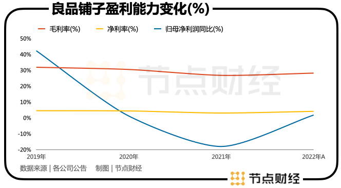 這也是過去兩年良品鋪子營收放緩以及凈利潤下滑的主要原因。