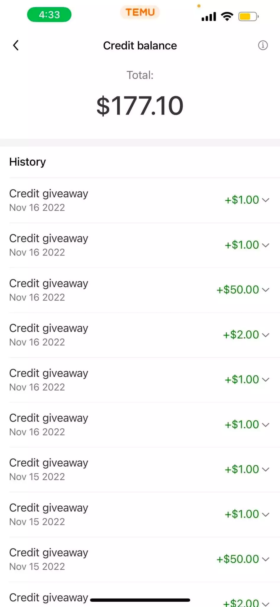 打開(kāi)Facebook,搜索Temu,會(huì)看到平臺(tái)遍布著用戶自發(fā)發(fā)帖“credit Giveaway”活動(dòng),賺取返利。