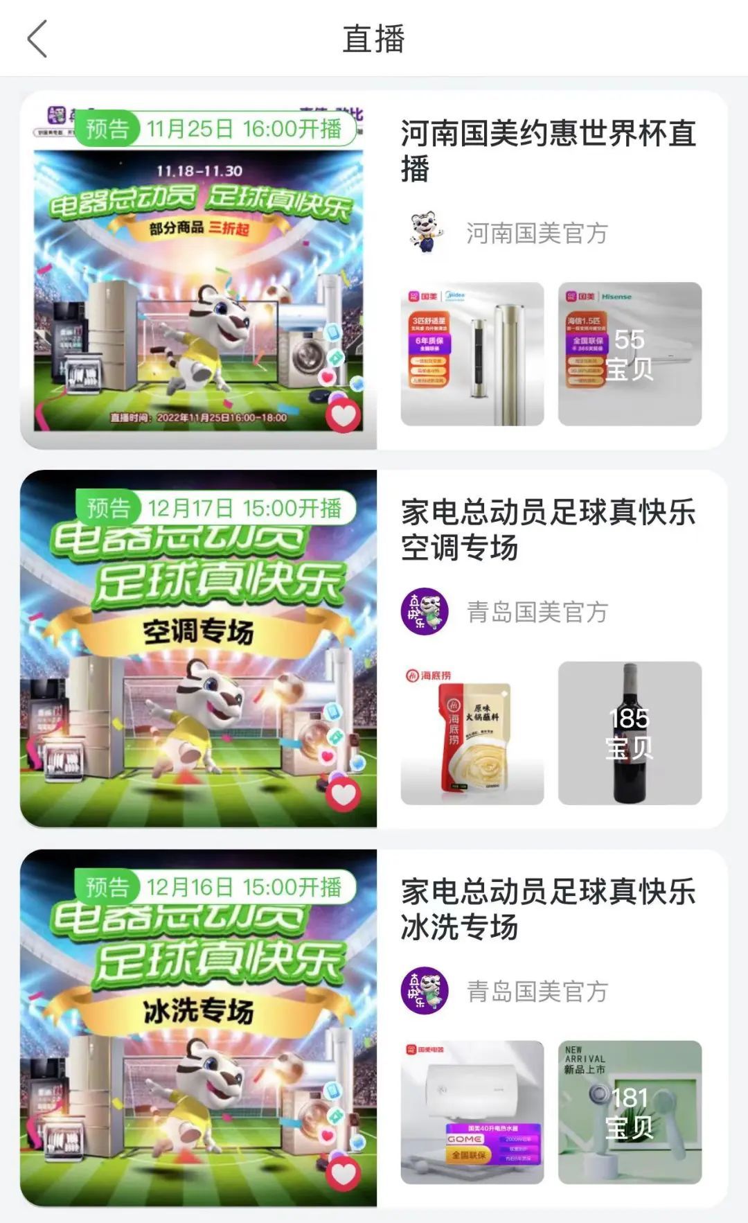 而正處于直播狀態(tài)中的四個直播間,署名“廈門國美官方”和“福州國美中亭街店”的兩個直播間內連工作人員都沒有,全程循環(huán)播放宣傳片,下面有網友評論稱“這是直播還是放音樂?”
