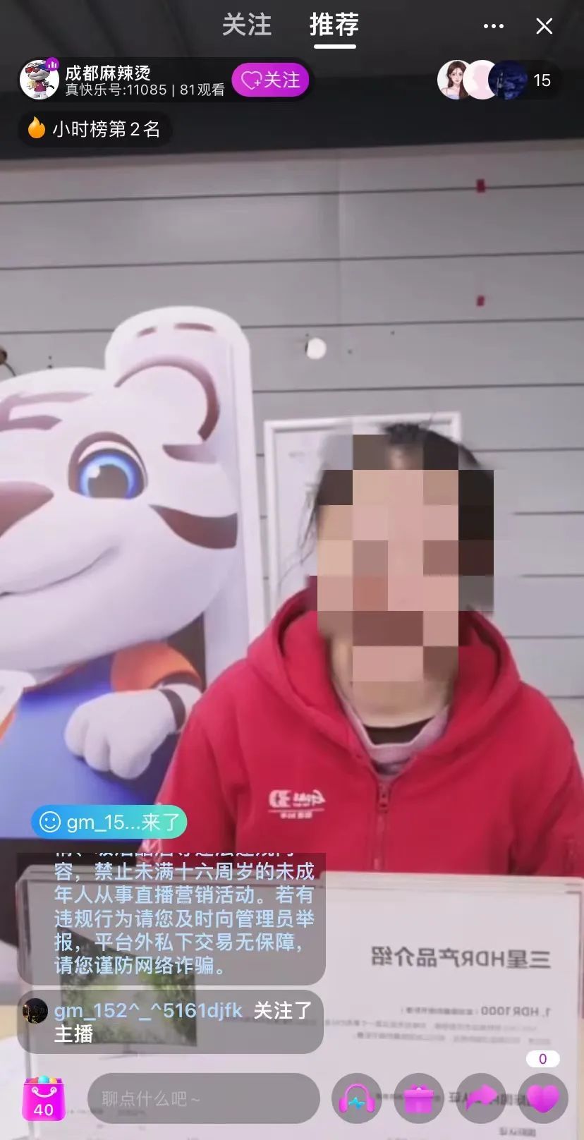此外,在個別直播間,還出現了直播畫面中字體呈現反面的情況。例如在一位“成都麻辣燙”的直播間,三星產品的介紹文字都是反著的。