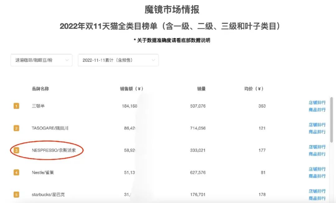 同時(shí),今年雙11期間,「NESPRESSO奈斯派索」在天貓、京東和微信商城3個(gè)平臺實(shí)現(xiàn)雙位數(shù)增長,在天貓咖啡機(jī)品類中,Nespresso濃遇咖啡天貓旗艦店咖啡機(jī)銷售量位列第一名。