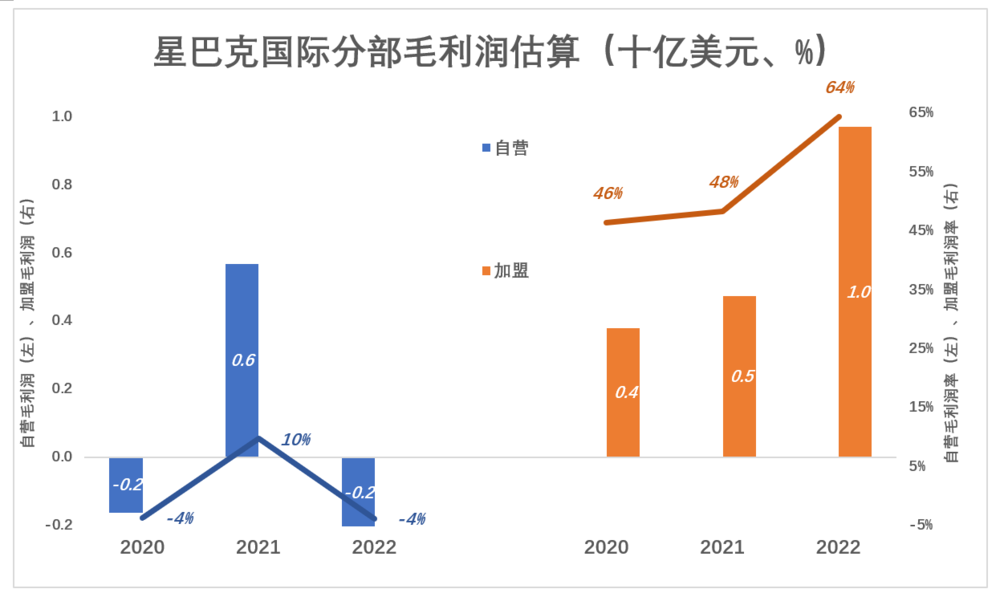 星巴克披露的信息有限,但仍可粗略估算自營、加盟各自的毛利潤。