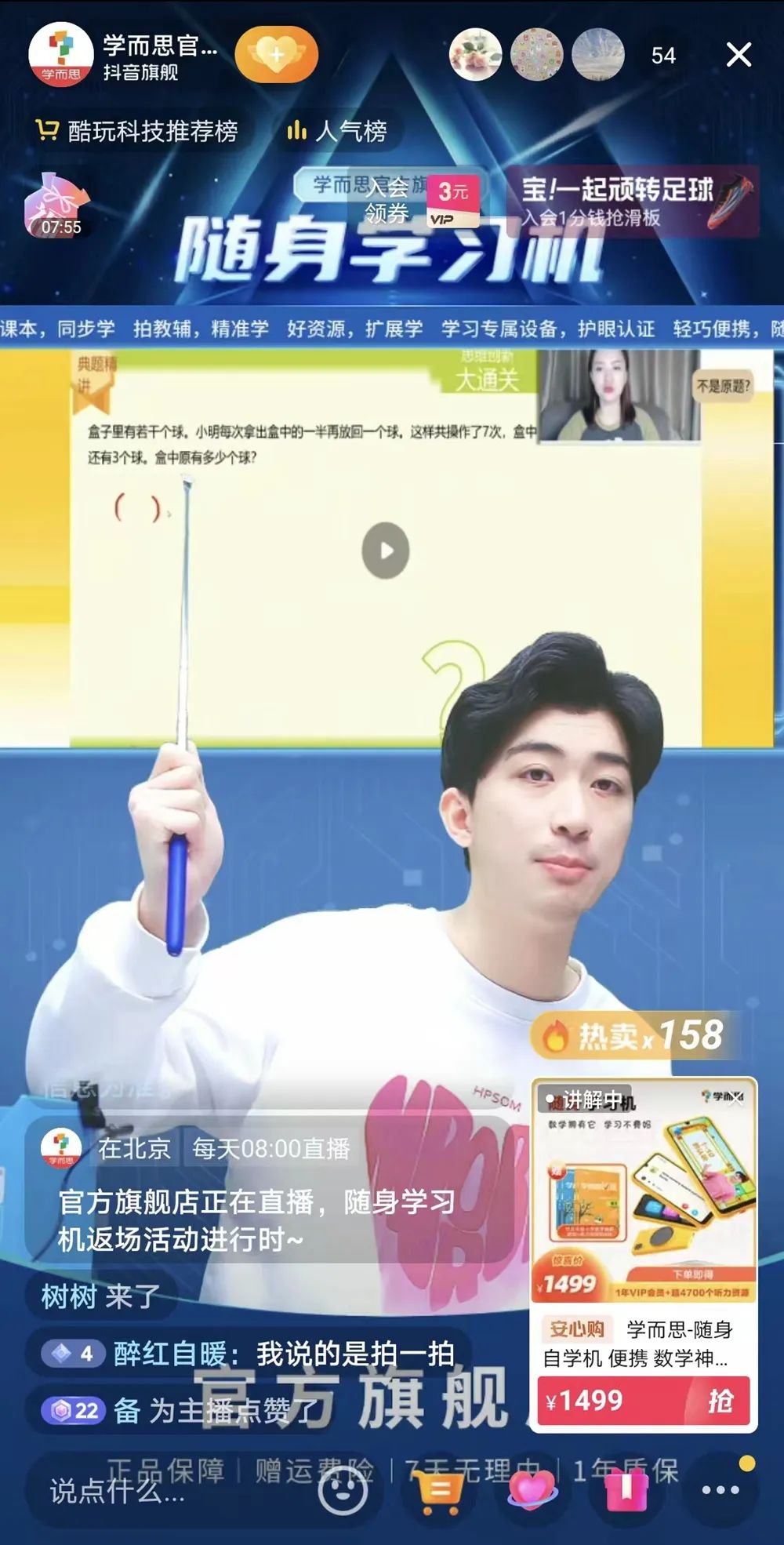 學(xué)而思直播間主營學(xué)習(xí)機(jī),圖源學(xué)而思抖音官方直播間