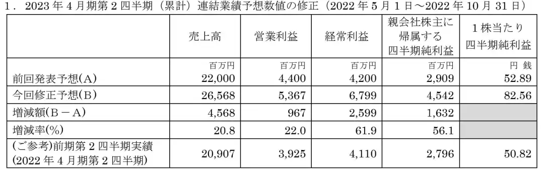 基于其強(qiáng)勁的財(cái)務(wù)數(shù)據(jù),雅萌在報(bào)告中稱,其2023財(cái)年全年的業(yè)績(jī)預(yù)期將保持不變,預(yù)計(jì)營(yíng)業(yè)收入同比增長(zhǎng)22%達(dá)到500億日元(約合人民幣25.8億元),凈利潤(rùn)增長(zhǎng)19%達(dá)到66億日元(約合人民幣3.4億元)。
