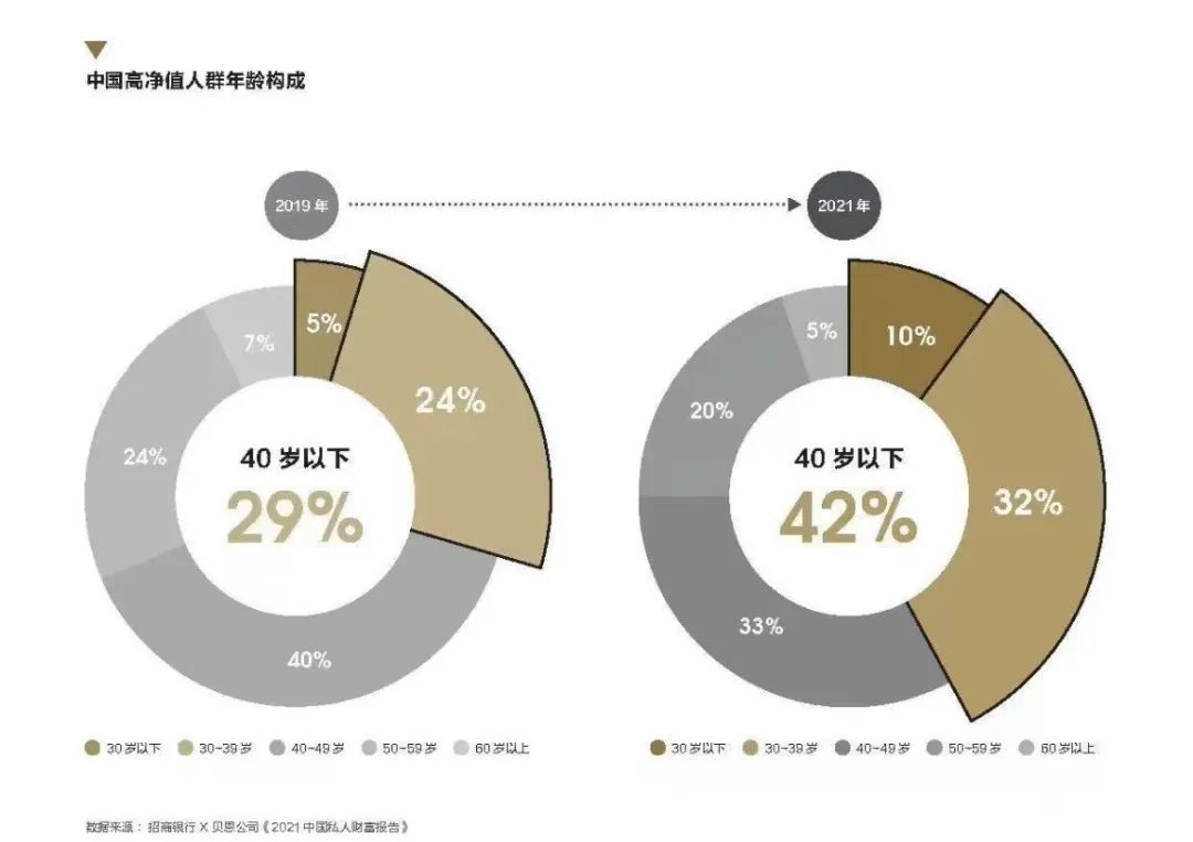 此外,隨著創(chuàng)富一代的年齡上升,二代繼承人漸漸成熟,高凈值人群也逐步年輕化。