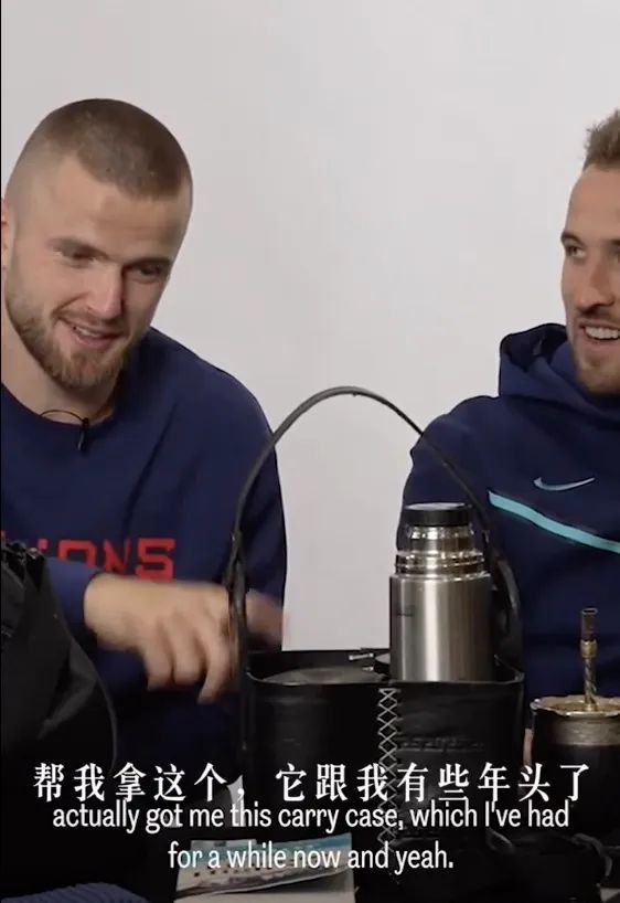 △英格蘭后衛(wèi)戴爾向隊友凱恩介紹自己的馬黛茶“裝備”。圖源:網(wǎng)絡(luò)截圖