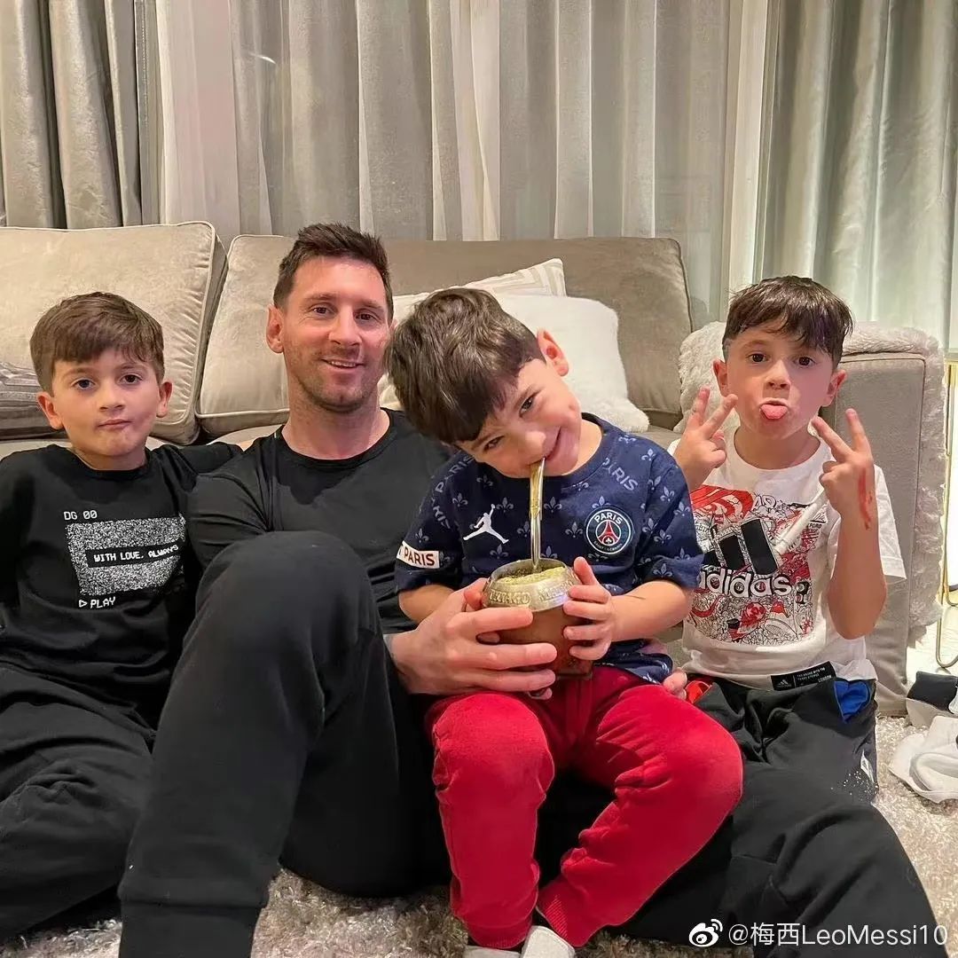 △梅西和家人共飲馬黛茶。圖源:梅西微博官方賬號