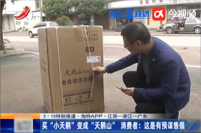 江西廣播電臺(tái)都市現(xiàn)場(chǎng)欄目,就曾在2021年時(shí)報(bào)道過(guò)這樣一個(gè)案例:江西南昌的消費(fèi)者李先生在淘特APP上購(gòu)買“小天鵝”牌洗衣機(jī),到手的卻是山寨貨“天鵝山”。買到假貨后,李先生想走法律程序維權(quán),卻發(fā)現(xiàn)維權(quán)無(wú)門,多次聯(lián)系淘特問(wèn)題卻都無(wú)法解決。@都市現(xiàn)場(chǎng) 記者實(shí)地走訪調(diào)查,發(fā)現(xiàn)該產(chǎn)品從銷售到生產(chǎn),注冊(cè)公司全為“空殼”。