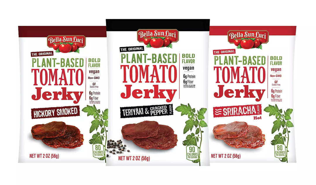 Bella Sun Luci Tomato Jerky是一系列素食牛肉干,主要由曬干的番茄制成。從外形上看,番茄本身的紅色與牛肉干天然適配,同時,曬干番茄固有的質(zhì)地和濃郁鮮味也可以很好的模擬牛肉干的韌勁和牛肉味。此外,每份30克的番茄牛肉干中含有6g蛋白質(zhì)和纖維,并有照燒&胡椒,是拉差醬和煙熏山核桃三種口味。產(chǎn)品還獲得2021年國際工匠植物肉干類金獎。