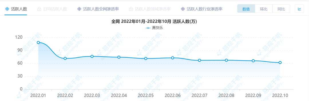 圖/真快樂全網(wǎng)活躍人數(shù)數(shù)據(jù) 來源/易觀千帆 燃次元截圖