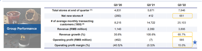 11月22日,瑞幸咖啡公布了2022年第三季度財報,營收、利潤和門店數(shù),都有顯著的增長。