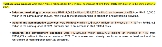 從平臺運營總費用上也可看出,拼多多不僅營收逆勢上漲,且不同于其他互聯(lián)網(wǎng)大廠的“省錢”策略來降本增效,公司依舊在成本投入上持續(xù)增加。
