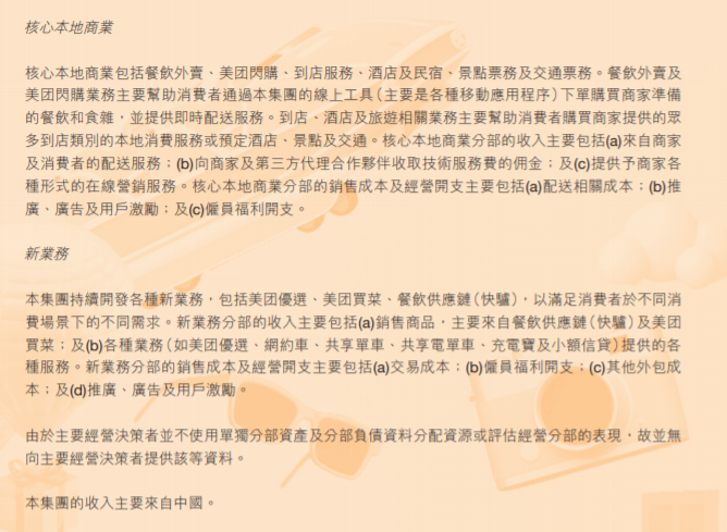 以前屬于到店酒旅的整個業(yè)務版塊,以及新業(yè)務中的閃購、民宿都劃入了核心本地商業(yè),新業(yè)務則在原先的基礎(chǔ)上減去了閃購和民宿。