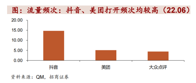 雖然美團模式的消費屬性強,復購率與核銷率都遠高于抖音,但是在用戶時間和使用頻次上,抖音遙遙領(lǐng)先。