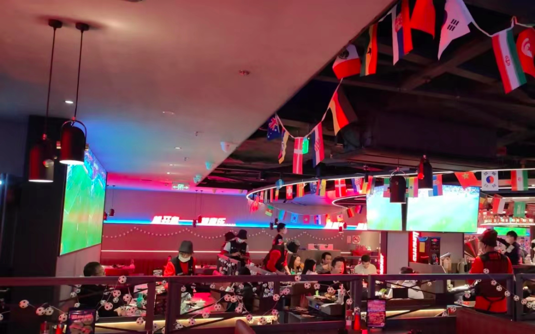 在趁燒剛開(kāi)業(yè)的時(shí)候,職餐記者就曾分析,其最大的“LED屏幕環(huán)繞”氛圍,似乎是為世界杯“量身定制”一般。