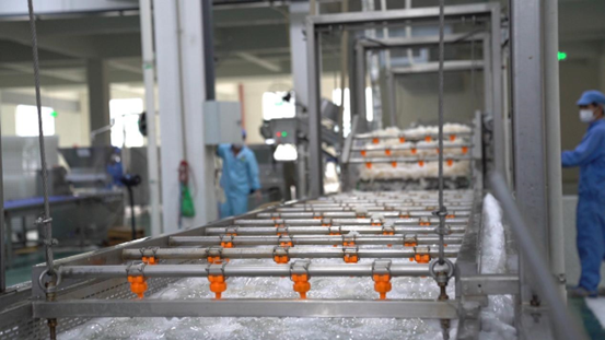 (采摘后的銀耳正在自動化設(shè)備中清洗)